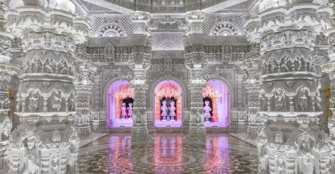 As a remarkable temple, the designers' dedication is not only reflected in its rich aesthetic design but also holds special significance in many aspects. For example, the 98 pillars depict the lives of the great spiritual seekers and devotees of Bhagwan Swaminarayan. Their inspiring stories, along with the main messages of Bhagwan Swaminarayan, are integrated throughout the Mandir.